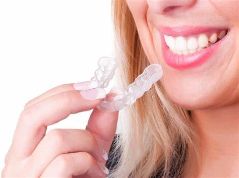For å holde tennene i sin nye posisjon limer vi en tynn gullstreng på baksiden av fortennene i både over- og underkjeven. I tillegg får pasienten pressplater – gjennomsiktige plastskinner som man sover med om natten for å forhindre at tennene flytter på seg.